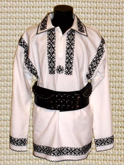 Camasa barbati traditional romaneasca din panza de bumbac brodata manual cu motive geometrice cu negru , guler normal, 3 nasturi la gat si maneca larga.